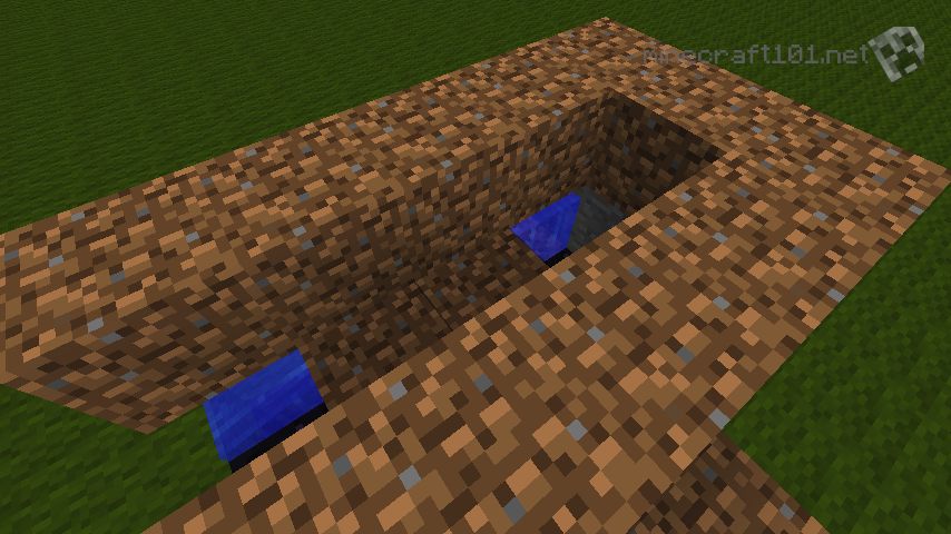 Place the lava at the end of the "U" as before; this time you will make 2 obsidian blocks with dirt between them.
